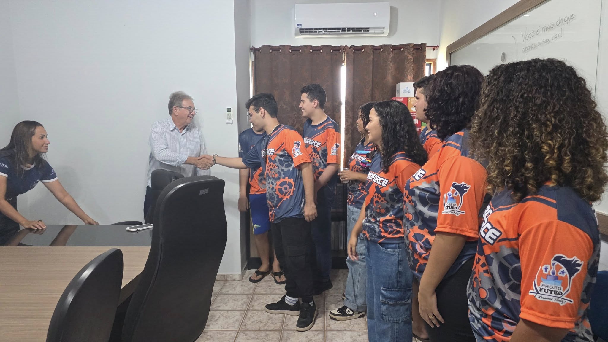 Alunos do PROJETO FUTURO que representará Paranaíta no Festival de Robótica e Mostra Científica em Cuiabá, visitam o Prefeito Osmar Moreira