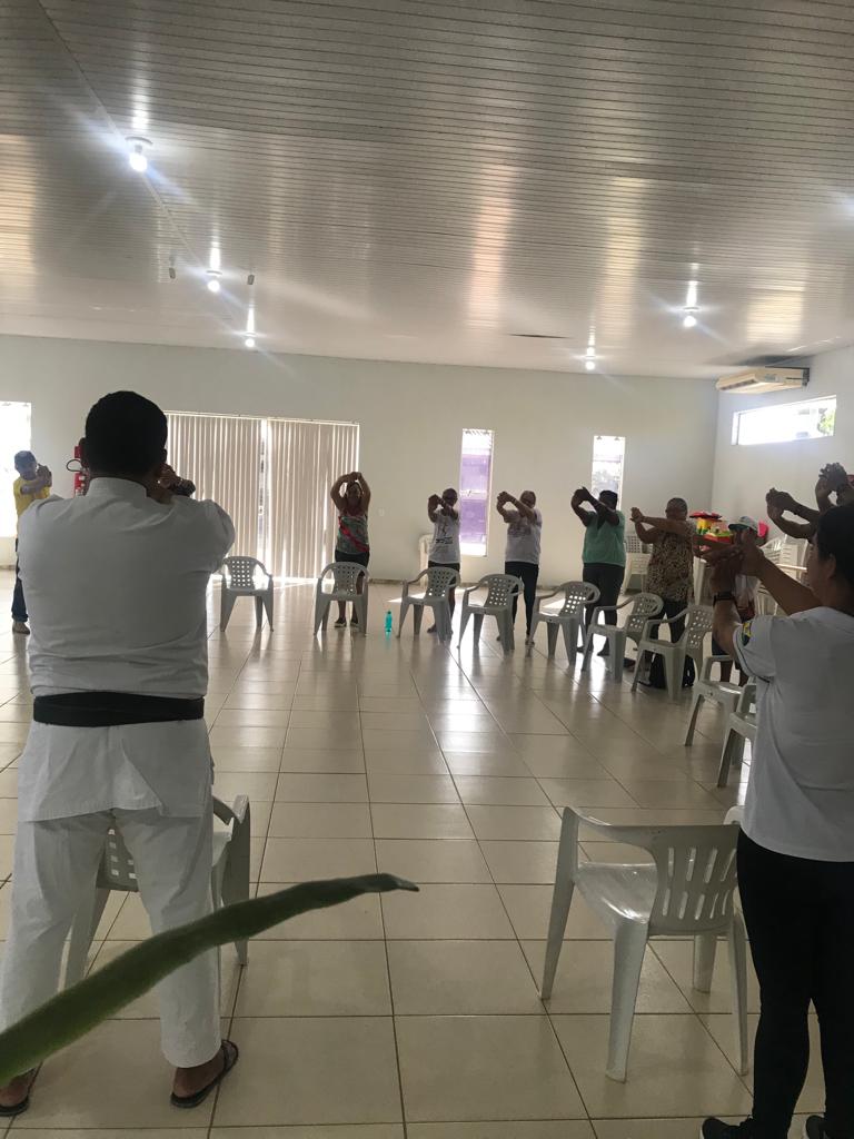 Nosso encontro quinzenal é sempre muito especial, hoje tivemos a segunda aula de Karatê com o Sensei Nelinho de Freitas, em seguida foi realizada uma dinâmica que tratou de um tema relevante para todos, que é a autoestima com uma contação de história bastante participativa dos idosos.