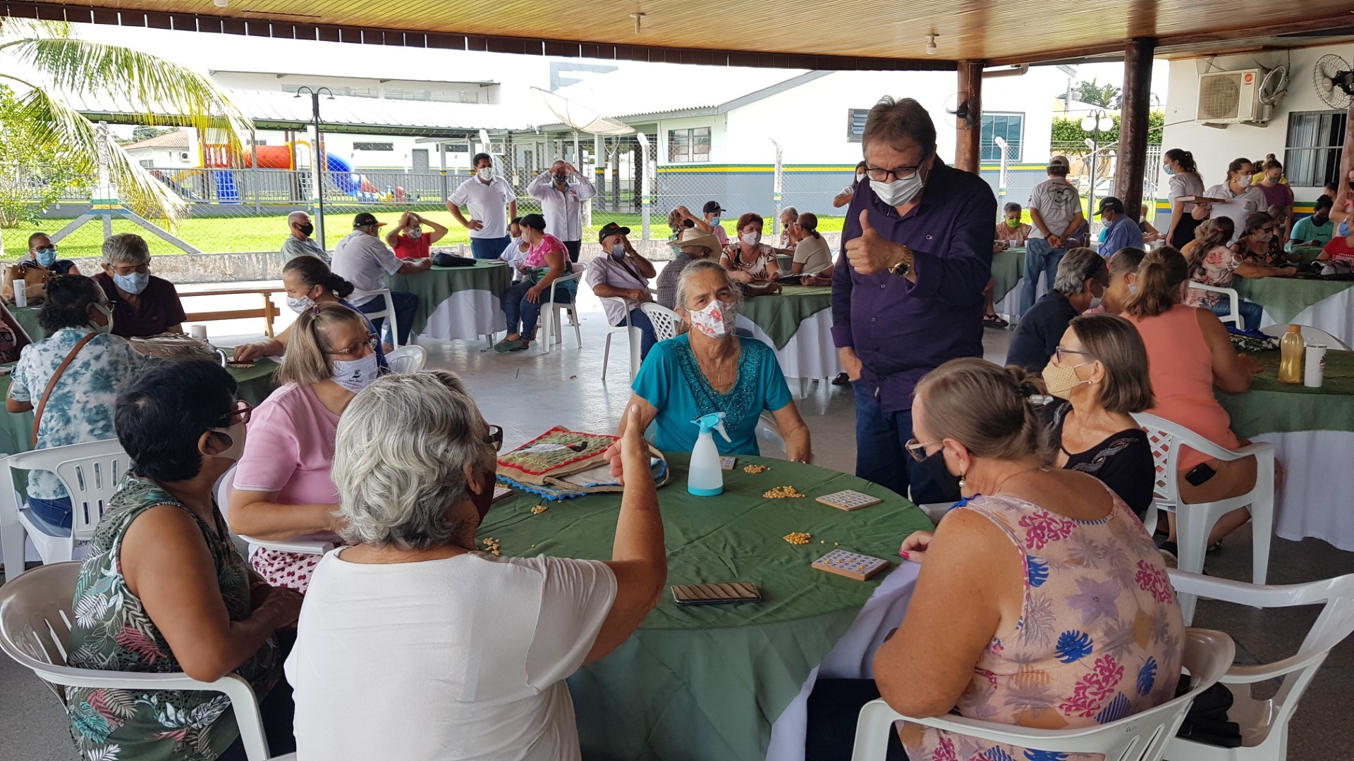 O Gestor Osmar Antônio Moreira esteve juntamente com a primeira Dama Nair Valentim Moreira participando com os idosos em um momento de descontração através de brincadeiras, músicas em geral, como quebra gelo, lembrou os aniversariantes do mês, a equipe ficou muito satisfeita com retorno das atividades.