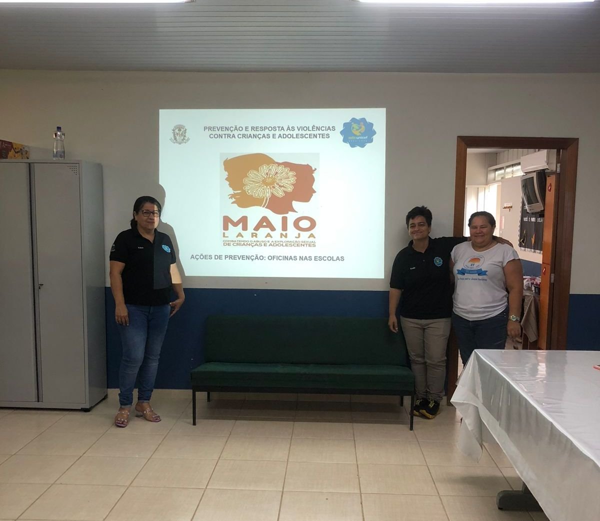 A Diretora Leodete e as Coordenadoras Pedagógicas da Escola, Professoras Alessandra e Luzinete destacaram que essa importante parceria com a Secretaria Municipal de Assistência Social foi oportunizada através do Plano de Ação entre SEDUC e as Redes de Atendimento às crianças e adolescentes do Município com as Escolas.